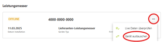 - Öffne das Menü in der Kachel des Leistungsmessers und wähle "Gerät austauschen" aus